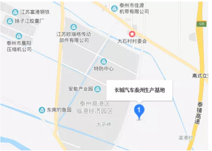 2019年2月20日,長城汽車確定落戶泰州;主要建設(shè)汽車整車、內(nèi)外飾及底盤制造項目,項目占地1173畝、規(guī)劃員工3000人,先期投資80億元,預(yù)計于2020年12月正式投產(chǎn)。泰州生產(chǎn)基地總規(guī)劃約10平方公里,通過5-10年的發(fā)展,構(gòu)建完整的汽車產(chǎn)業(yè)鏈體系,建設(shè)創(chuàng)新驅(qū)動、科技人文、宜居宜業(yè)、產(chǎn)城交融的國際化園區(qū),圍繞“創(chuàng)新、協(xié)調(diào)、綠色、開放、共享”發(fā)展理念,以投資建設(shè)汽車整車制造為核心,汽車關(guān)鍵零部件為配套、以及金融(包括汽車金融)、汽車保險、共享出行、汽車產(chǎn)業(yè)創(chuàng)業(yè)基地等為延伸的汽車科技產(chǎn)業(yè)園。泰州廠區(qū)主要包括:沖壓車間、焊裝車間、涂裝車間、總裝車間以及諾博汽車、精誠工科等四家零部件公司。泰州基地主要生產(chǎn)A01、ES11兩款車型,整體規(guī)劃年產(chǎn)能為20萬輛。長城汽車泰州分公司位置:
